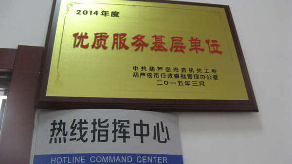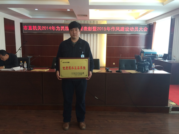 2015年4月16日,在我市召開的2014年度市直機(jī)關(guān)窗口單位服務(wù)行業(yè)“為民服務(wù)創(chuàng)先爭優(yōu)”競賽活動(dòng)總結(jié)表彰大會(huì)上,公司熱線指揮中心被評(píng)為“優(yōu)質(zhì)服務(wù)基層單位”,成為全市18家獲此榮譽(yù)的基層單位之一。