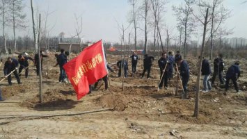 當(dāng)天下午1點半,到達指定位置后,大家立即行動起來,有的挽起袖子,有的脫去外套,拿起平鍬,奮力鏟土。大家你抬樹、我扶樹、他填土,彼此之間互相幫助,配合默契,干得熱火朝天,都覺得我們種的不僅僅是樹木,更是城市環(huán)境的未來與希望。經(jīng)過一個半小時的“奮戰(zhàn)”,240棵銀杏樹整齊地展現(xiàn)在大家面前。雖然大家面露疲色、汗流浹背,但興奮與自豪之情仍溢于言表。