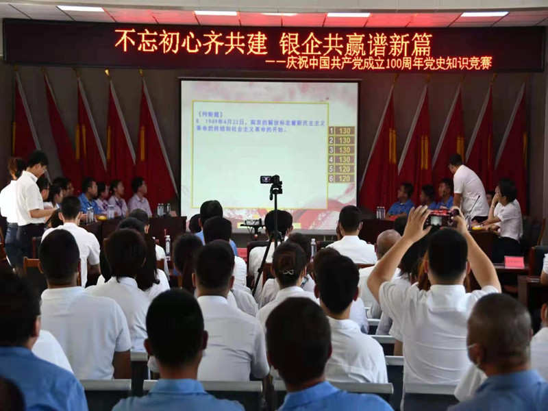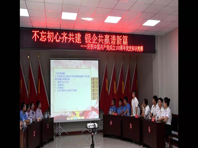百年征程波瀾壯闊,百年初心歷久彌堅(jiān)。為深入推進(jìn)黨史學(xué)習(xí)教育走心走深走實(shí),以實(shí)際行動(dòng)踐行初心使命,營造學(xué)黨史、知黨情、跟黨走的濃厚氛圍。7月26日,葫蘆島市自來水公司攜手中國農(nóng)業(yè)銀行、中國銀行、中機(jī)青山公司、平山公司、烏金塘水庫共同舉辦:“不忘初心齊共建 銀企共贏譜新篇”慶祝中國共產(chǎn)黨成立100周年黨史知識(shí)競賽活動(dòng),旨在通過學(xué)習(xí)競賽形式普及黨史知識(shí),更好的促進(jìn)銀行與供水企業(yè)之間的交流與合作,為中國共產(chǎn)黨百年華誕獻(xiàn)禮。市國資委副主任、黨委委員單亞光,黨辦主任李海峰應(yīng)邀出席會(huì)議,各參賽單位主要領(lǐng)導(dǎo)參加會(huì)議。