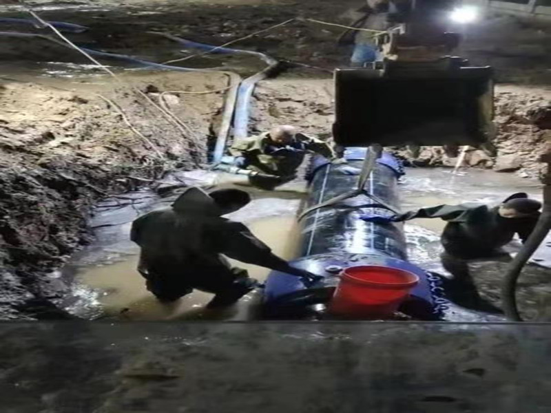 4月18日下午四時(shí)左右,工程公司接到工單,位于北港工業(yè)園區(qū)新興鋼管廠(chǎng)墻外出現(xiàn)漏點(diǎn)。該管線(xiàn)供水區(qū)域?yàn)楸备酃I(yè)園區(qū)和打漁山開(kāi)發(fā)區(qū)。維修人員到達(dá)現(xiàn)場(chǎng)后發(fā)現(xiàn),造成此處漏點(diǎn)的管線(xiàn)為PE630管線(xiàn),爆管長(zhǎng)度達(dá)4.5米。由于此路段沒(méi)有下水,路面積水深度達(dá)30厘米。自來(lái)水公司經(jīng)理李文生、副經(jīng)理馬旭、周小勇得知此事后,責(zé)令工程公司全力以赴組織搶修。