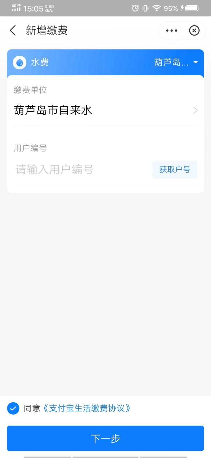 點(diǎn)擊繳費(fèi)單位(葫蘆島市自來(lái)水公司)—輸入用戶編號(hào)—點(diǎn)擊下方同意—填寫家庭住址