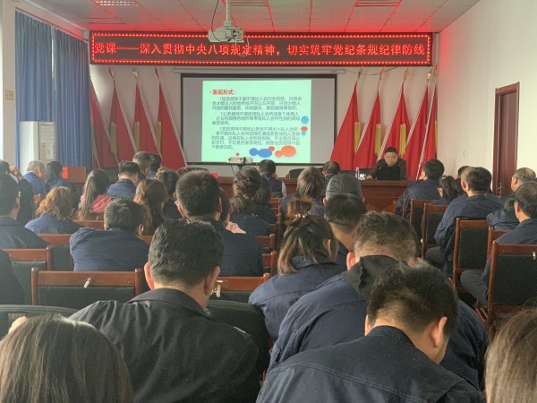 為深入開展“不忘初心、牢記使命”主題教育,進(jìn)一步推進(jìn)黨風(fēng)廉政建設(shè)深入開展,貫徹落實中央八項規(guī)定精神,根據(jù)公司黨委關(guān)于開展“不忘初心、牢記使命”主題教育安排,10月23日下午,公司黨委特邀市委第三巡察組組長梁志遠(yuǎn)為全體黨員干部上了一堂題為《深入貫徹中央八項規(guī)定精神,切實筑牢黨紀(jì)條規(guī)紀(jì)律防線》的專題黨課。公司黨委書記張旭濱主持會議,公司基層副職以上干部和全體黨員100余人參加了學(xué)習(xí)。