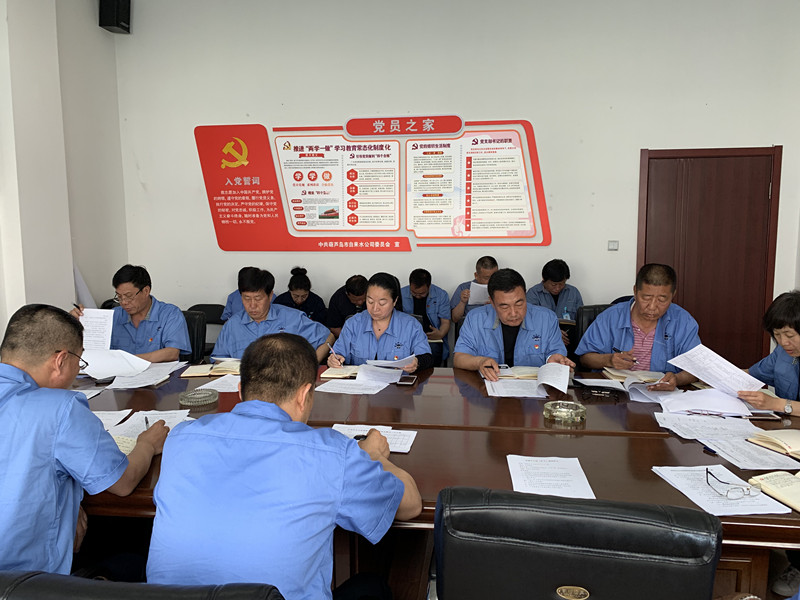 會上,學習傳達了5月24日市住建局第12次黨組擴大會議精神——《市委第三巡察組巡察市住建局黨組反饋意見整改落實方案》、《市住建局黨組落實巡察反饋意見整改工作臺賬》、《整改清單》,就市委巡察組反饋的問題、意見及住建局有關要求,制定并下發(fā)了《自來水公司黨委落實巡察反饋意見整改方案》、《自來水公司整改工作臺賬》,要求全體黨員干部提高認識,嚴格按照《整改方案》、《整改臺賬》落實整改工作,確保整改工作取得實效。