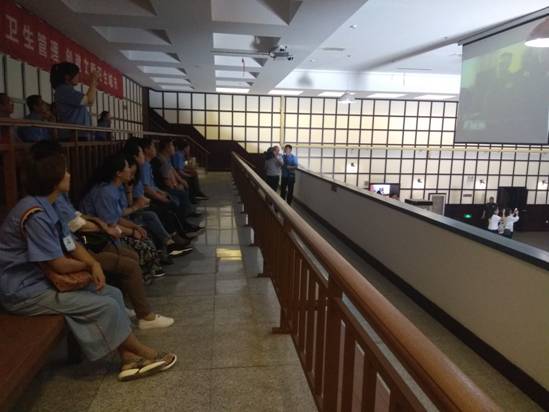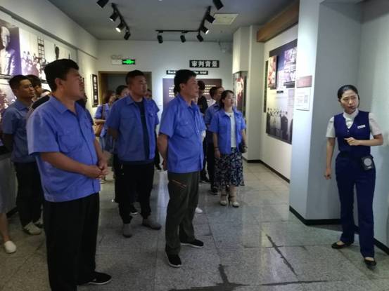 活動的第一站是沈陽審判日本戰(zhàn)犯特別軍事法庭舊址。據(jù)講解員介紹,它是新中國在1956年審判日本戰(zhàn)犯的法庭遺址。陳列展覽包括文字、照片、史料,文物、多媒體演示等展覽形式。展覽共分為“審判背景” “審判準(zhǔn)備”“莊嚴(yán)審判”“尾聲”等四個部分,全面展示了日本戰(zhàn)犯在沈陽接受審判的整個過程,重現(xiàn)了1956年中國政府成立特別軍事法庭,對日陸軍中將師團(tuán)長鈴木啟久、偽滿洲國國務(wù)院總務(wù)長官武部六藏等36名戰(zhàn)犯進(jìn)行審判的歷史場景。黨員們在現(xiàn)場莊嚴(yán)地舉起右拳,面對黨旗宣誓,重溫入黨誓詞,一起回顧入黨初心。宣誓結(jié)束后,隨同講解員參觀了各個展廳及復(fù)原的公審日本戰(zhàn)犯場景蠟像,觀看了公審日本戰(zhàn)犯的影像紀(jì)錄片,這場令中國人民揚(yáng)眉吐氣的審判,讓大家深刻感受到了中國對待日本戰(zhàn)犯的寬大胸懷,對祖國的敬佩之心油然而生。