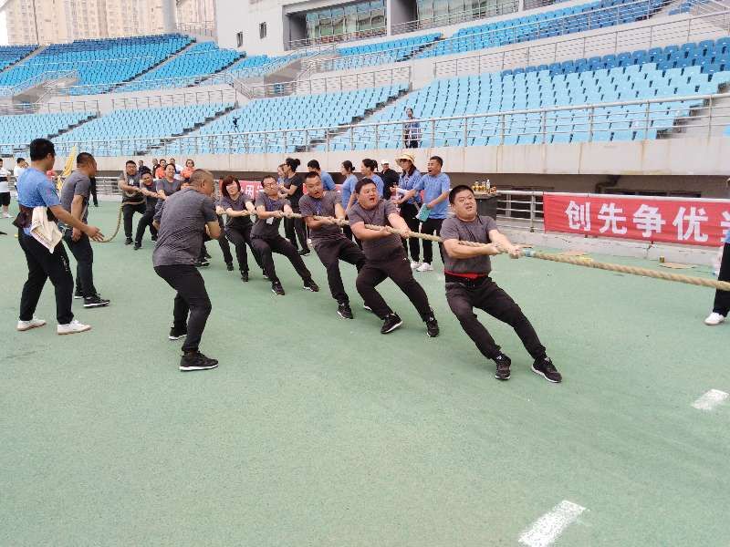 市自來(lái)水公司工會(huì)層層選拔、精心挑選,組成了一支由工會(huì)副主席臧威帶隊(duì)的15人參賽團(tuán)隊(duì)。隊(duì)員們統(tǒng)一著裝,精神振奮,熱情高漲,比賽過(guò)程中,無(wú)論是場(chǎng)上還是場(chǎng)下,氣氛都異常激烈。參賽隊(duì)員們手握緊繩子,身體向后傾,隨著裁判員的一聲哨響,隊(duì)員們努力拼搏,尤其是在勝負(fù)難分的時(shí)刻,大家毫不退卻,咬緊牙關(guān),堅(jiān)持到底。賽場(chǎng)上的選手們堅(jiān)強(qiáng)勇敢的作為、團(tuán)結(jié)協(xié)作的精神深深的感染了在場(chǎng)的每個(gè)人,連中場(chǎng)休息的隊(duì)伍也在為賽中的選手們加油助威,富有節(jié)奏的吶喊聲、加油聲,充斥在比賽場(chǎng)地上空。經(jīng)過(guò)循環(huán)賽、淘汰賽的激烈角逐,公司工會(huì)代表隊(duì)在小組比賽中取得了第一名的優(yōu)異成績(jī)。
