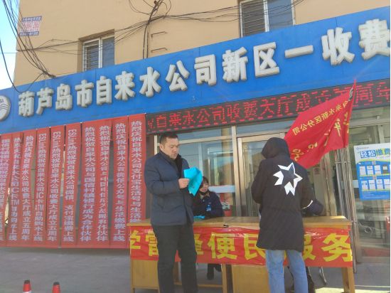 此次活動的目的是大力宣傳微信、支付寶新型繳費方式,宣傳智慧水務(wù)平臺,使用戶可以隨時查閱公司服務(wù)資訊,做到方便用戶,讓用戶真正體會到輕松服務(wù)。各營業(yè)分公司分別在新區(qū)龍灣市場繳費廳門前、龍港區(qū)馬仗房中國農(nóng)業(yè)銀行門前、連山區(qū)樂購門前和東城區(qū)自來水繳費廳門前設(shè)立宣傳點,發(fā)放微信、支付寶繳費方式宣傳單,現(xiàn)場講解使用方法并耐心答疑。