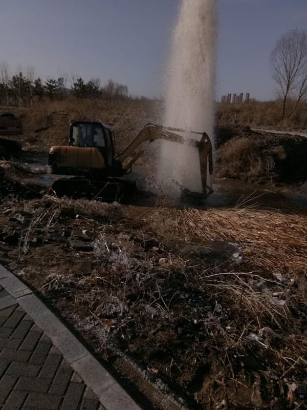 12月24日,星期日,上午10時30分左右,位于市工業(yè)學(xué)校后側(cè)的龍繡街河道內(nèi)的自來水DN1000管線在疏通河道的施工中被損壞,該管線是老合臺凈水廠向新區(qū)供水的主管線,管線內(nèi)壓力很大,自來水從管線內(nèi)噴出,形成10多米高的水柱,噴射到人行道上。