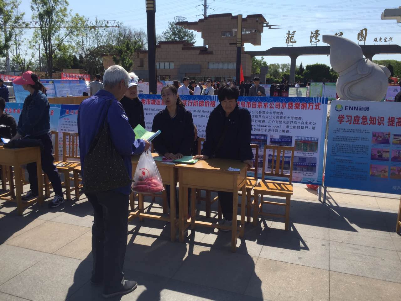 5月15日上午,自來水公司營業(yè)二分公司在葫蘆島市龍灣公園廣場開展政務(wù)公開日宣傳活動。今年政務(wù)公開日的主題是“推進政務(wù)公開、優(yōu)化營商環(huán)境”。通過現(xiàn)場咨詢、展板、發(fā)放宣傳單等形式,向市民群眾公開了階梯水價、用戶交費指南、收費項目標(biāo)準(zhǔn)等相關(guān)內(nèi)容,工作人員還現(xiàn)場接受市民用水咨詢,與市民面對面溝通交流,熱情認真的為市民答疑解惑。公司黨委書記張旭濱全程參與了宣傳活動。